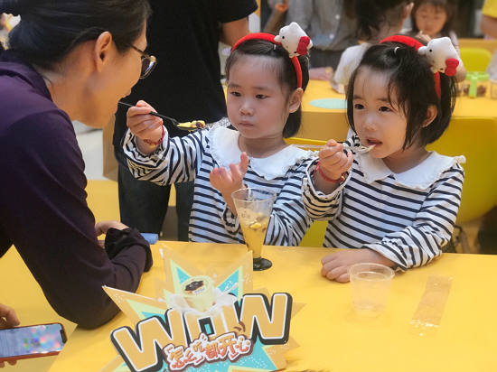 在活动现场,开心保龄球、开心100分、开心套圈圈等游戏深得大家的喜爱。大朋友小朋友联动出击,组队游戏,家长们敏捷的身影与耐心的指导,小朋友则一脸开心与认真,亲子互动的瞬间幸福感爆棚。在获得游戏积分集齐印章后,便可进行鲜漾布丁的免费小甜品制作,大小朋友共同尝试DIY快乐甜品造型,让美味和趣味一同定格在开心的陪伴里。